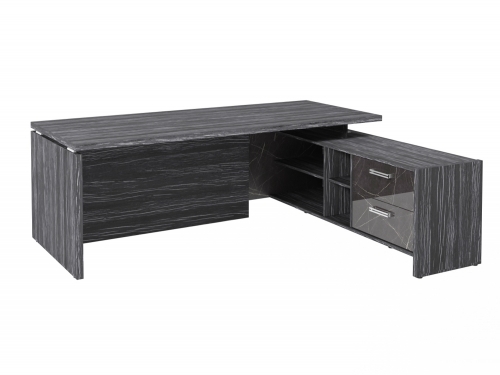 Столешница, бок стола и бок тумбы выполнены из ЛДСП толщиной 38 мм. Цвет - "Древесина Графит". Кромка 2 мм.