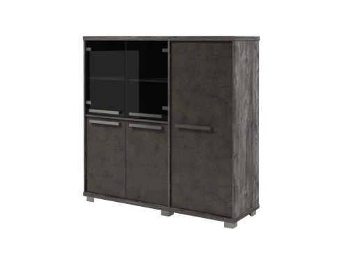 Справа одна дверь глухая. Слева в двух секциях в нижней части - двери ЛДСП, сверху - стеклянные двери.